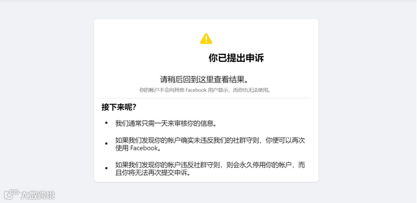 如果上诉过程没有立即得到解决,请继续提供更多相关信息,并保持与 Facebook 支持团队的沟通。描述你已采取的每一步措施,以表明你对解决问题的认真态度。