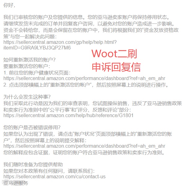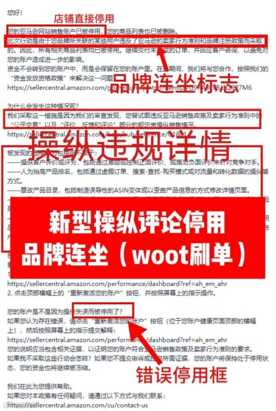 亚马逊店铺因Woot活动被封,邮件中列出的违规项往往不止一条: