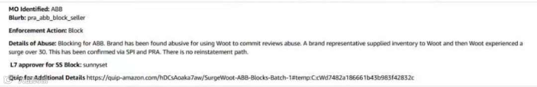 这类案件相对来说简单一些。品牌下没有其他店铺的违规记录,只有唯一的店铺通过Woot做了一次或有限的几次刷单,因销量激增触发了风控。