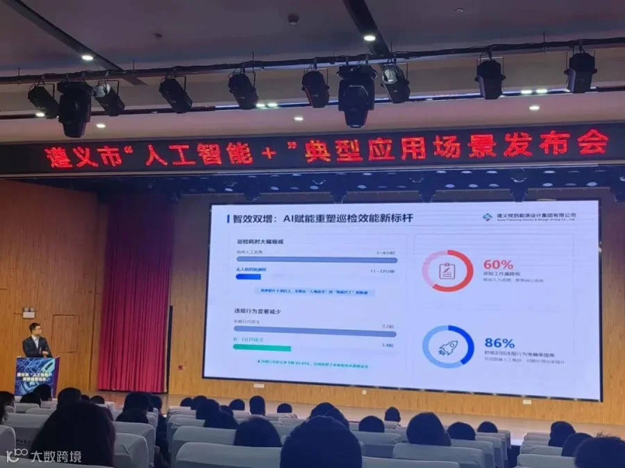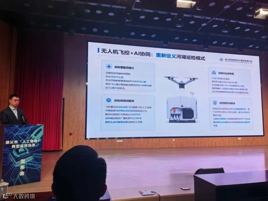 聚焦AI融合创新,赋能城市发展!2026年3月6日,遵义市举行“人工智能+”典型应用场景发布会,集中发布了43个成效显著、特色鲜明的典型应用场景清单与10个今年重点行业大模型建设需求清单,全面展示人工智能技术在遵义市经济社会多领域的融合创新与实践成果。此次活动旨在通过搭建政产学研用的交流平台,集中展示典型应用场景,共同探索、交流数字场景应用的策略与路径,凝聚发展共识和发展向心力,不断提升“人工智能+”场景赋能经济社会发展的广度和深度,为遵义经济社会高质量发展提供强大数字引擎。我公司打造的“基于无人机飞控+AI智能识别的河湖智能巡检技术”成功入选“人工智能+”典型应用场景,“智慧排水监管平台”和“农村供水智慧化管理平台”成功入选优秀数字化应用场景服务业领域典型案例,并在发布会上进行了现场演示,充分展示了人工智能技术在河湖管理领域的创新应用与实战成果。