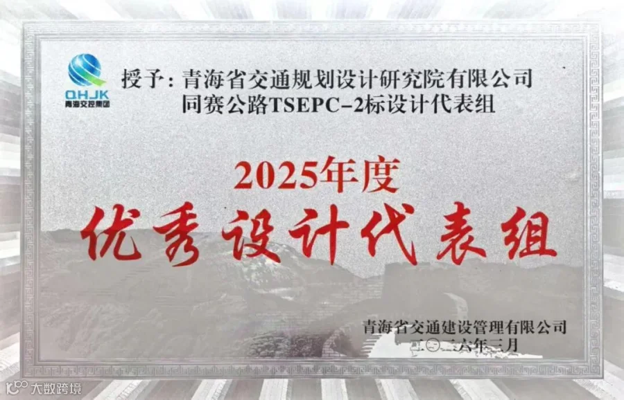 3月18日,公司G0611张掖至汶川国家高速公路青海省同仁至赛尔龙(青甘界)段TSEPC-2标段项目组凭借专业担当与突出贡献,荣获省交建公司颁发的“2025年度优秀设计代表组”荣誉称号。