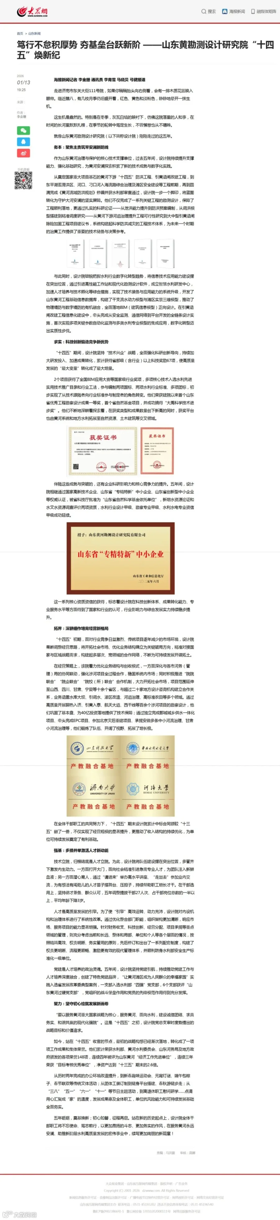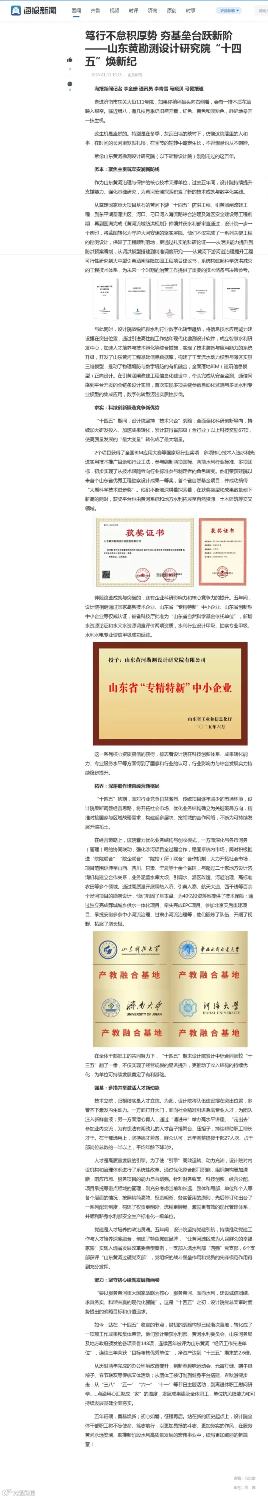 在全体干部职工的共同努力下,近日,反映设计院“十四五”主要工作成效的综述文章陆续在大众网,大众日报客户端,齐鲁晚报·齐鲁壹点,海报新闻等平台发布,欢迎大家阅读和转发。