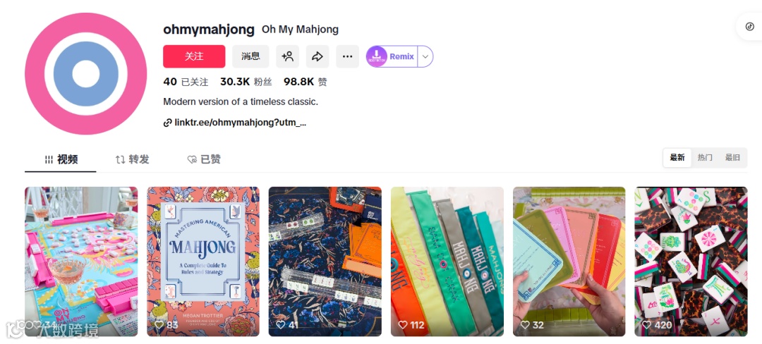 OH MY Mahjong的TikTok账号内容高度聚焦:Megan亲自教学美式麻将规则,单条视频时长控制在1–2分钟,场景朴素(仓库、餐桌),但讲解热情、产品展示精致。“教学即营销”模式快速积累忠实粉丝。