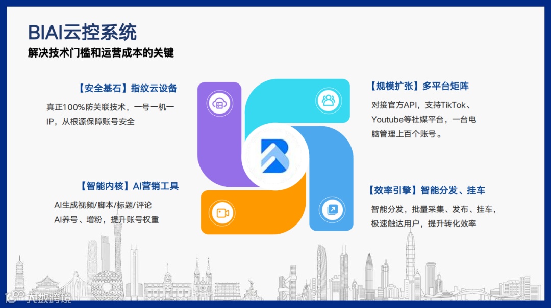 这些需求,正推动“BIAI云控”等专业化工具被跨境团队广泛采用。其核心价值在于实现社媒运营关键环节的系统化: