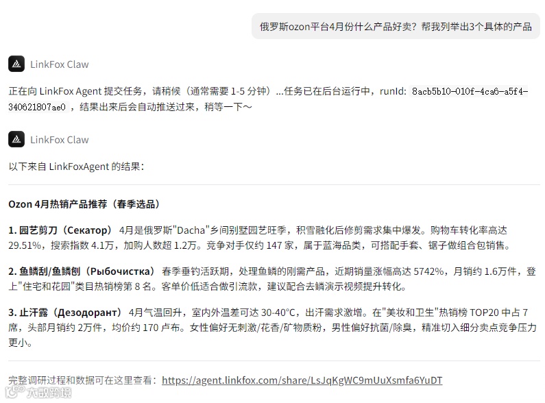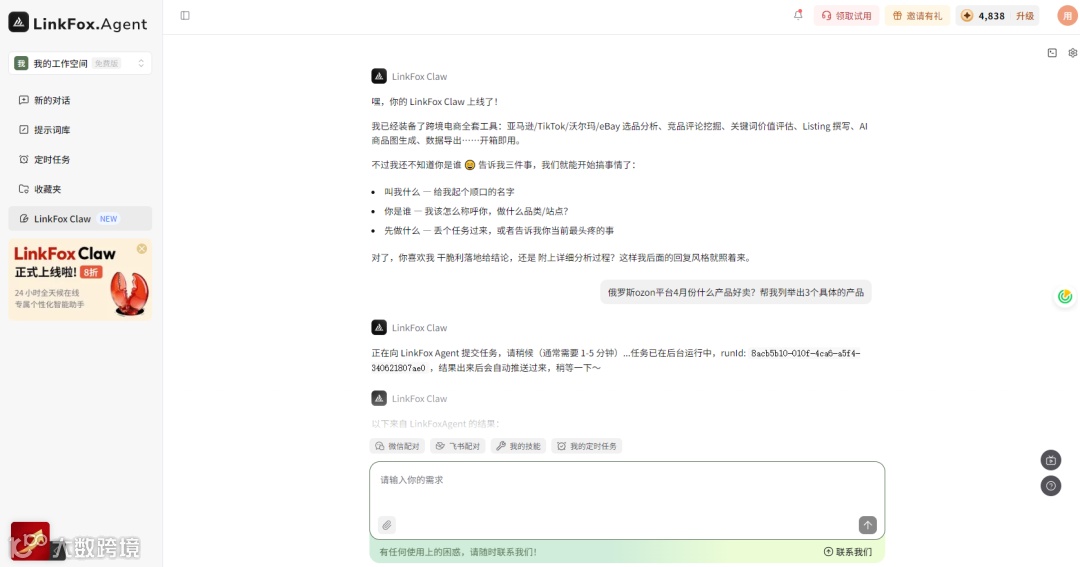 LinkFox Claw:面向新手的智能分析助手
