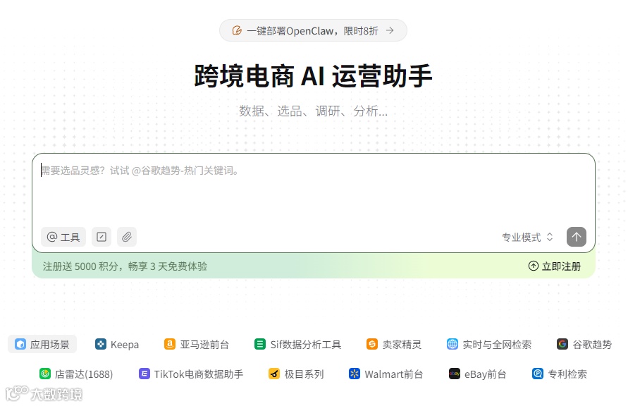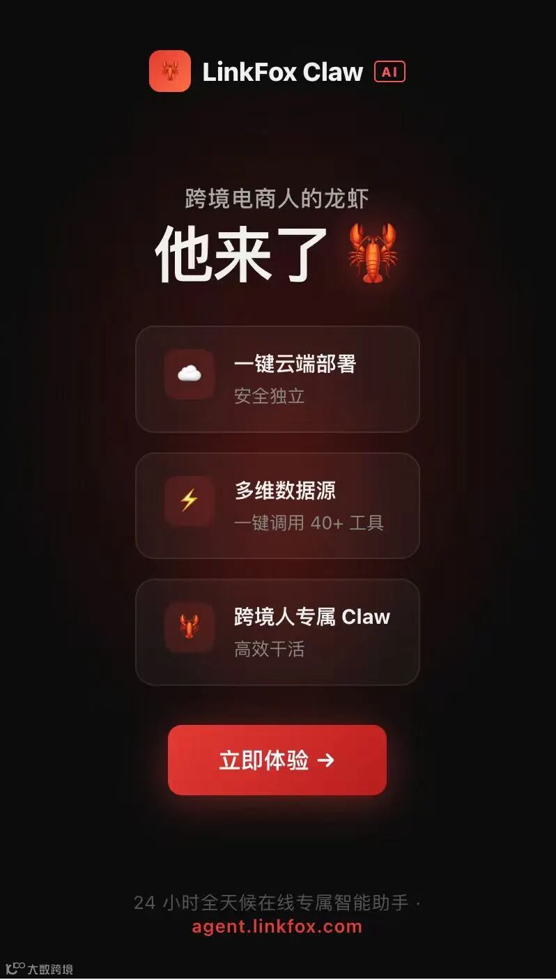 针对Agent操作门槛高、提示词模板复杂等问题,LinkFox推出专为跨境人设计的AI助手——LinkFox Claw。它无需配置环境、无需API密钥,云端部署即开即用。