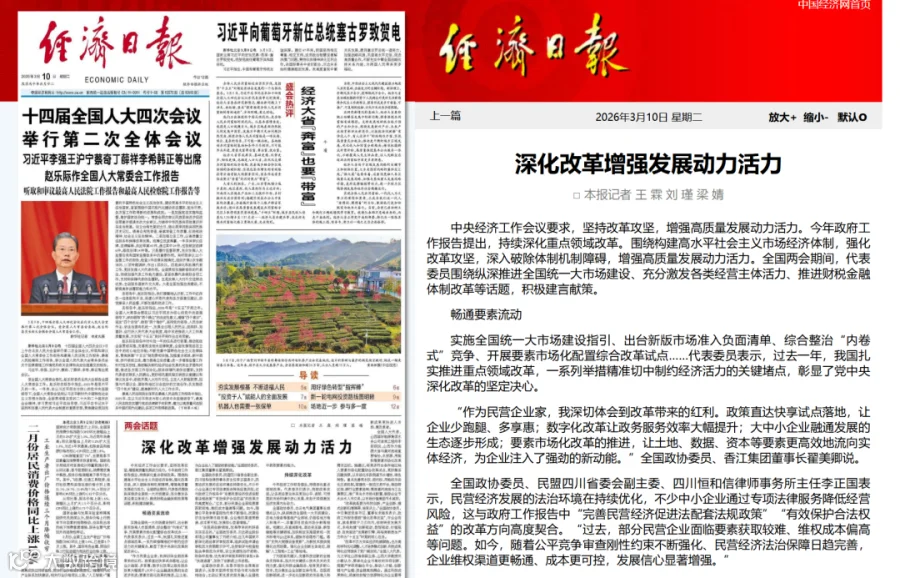 《经济日报》3月10日报道,“改革就是要为科技创新、产业创新、模式创新扫清障碍、培育沃土。”宋海良表示,政府工作报告提到“强化改革攻坚”,对企业而言,就是要敢于刀刃向内,彻底转变发展方式,系统构建“创新驱动、数智驱动、价值驱动、自我驱动”发展新引擎,将培育新质生产力作为“十五五”时期的核心任务。