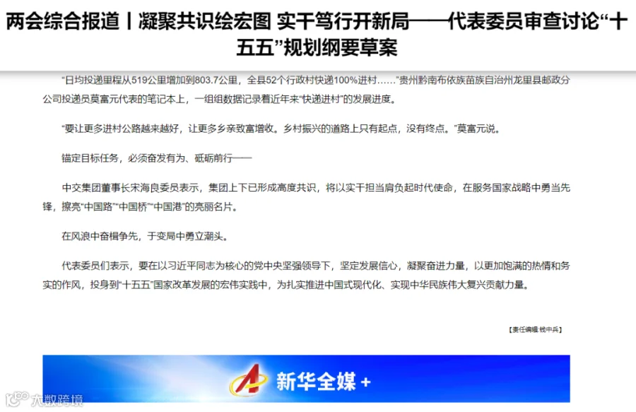 新华网:两会综合报道丨凝聚共识绘宏图 实干笃行开新局——代表委员审查讨论“十五五”规划纲要草案