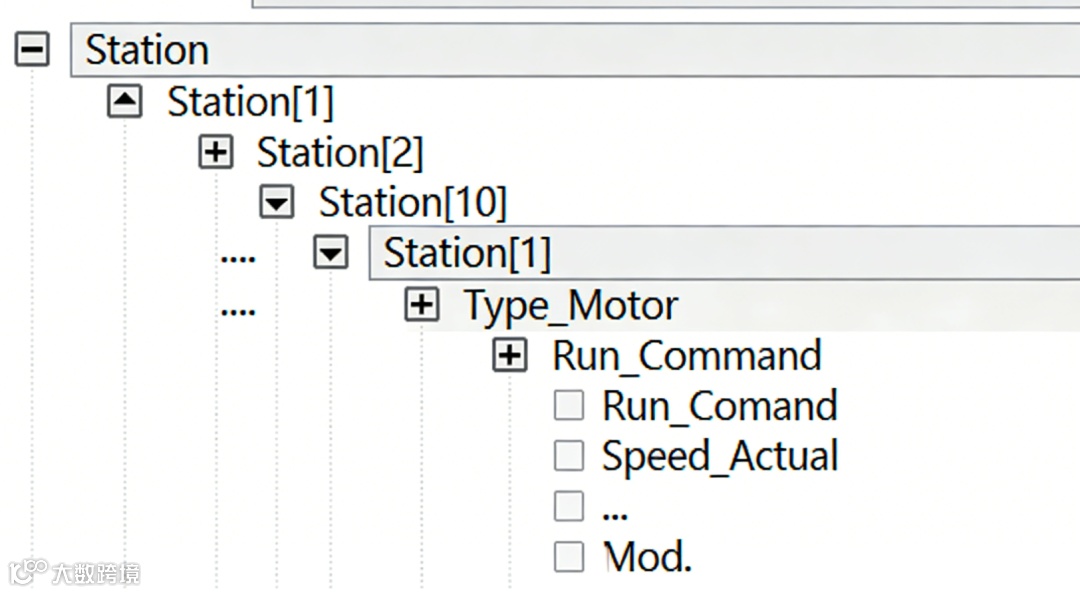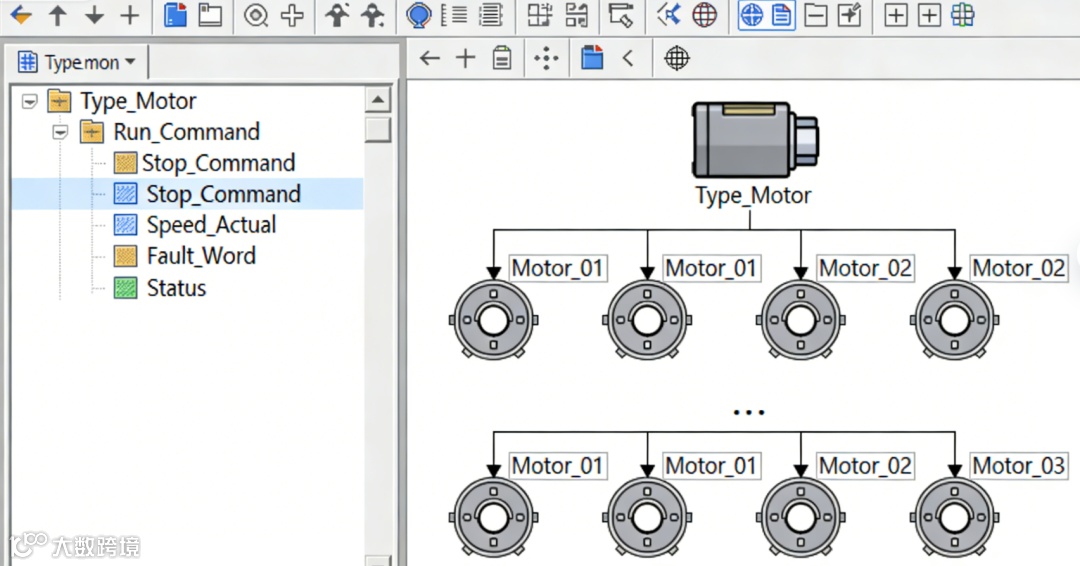 Type_Motor的UDT,然后生成Motor_01、Motor_02等实例,每个实例内部的结构完全相同。