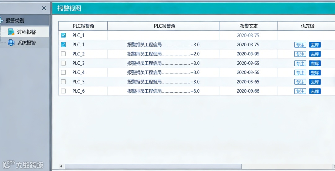 PLC中的工艺报警由用户程序触发,报警信息(文本、时间、状态)通过系统通信传递给HMI或SCADA。