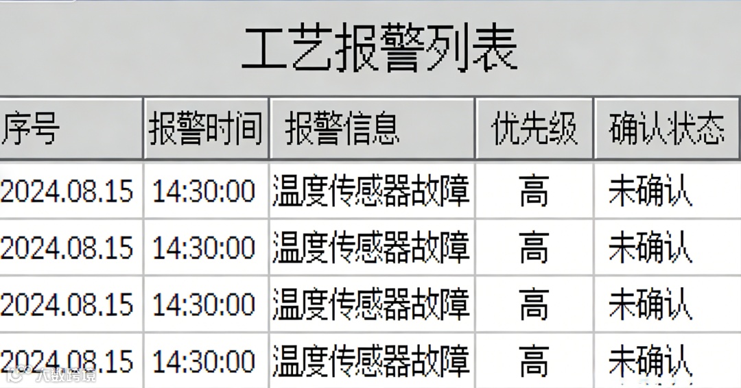对于需要确认的报警(如“紧急停机”),操作员可在HMI上点击确认,