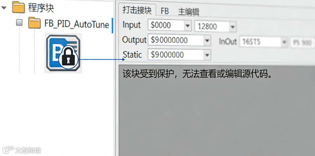 TIA Portal的“块保护”功能允许工程师将FB的源代码完全隐藏,只保留其接口(Input、Output、InOut、Static)供外部调用。