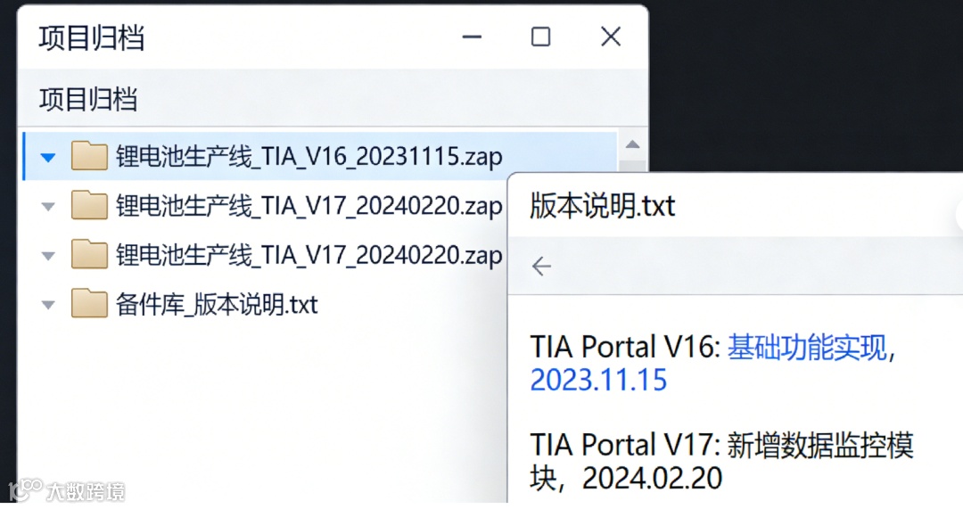 .zap文件时,会触发自动升级。反之则不行。因此,在归档时,建议:记录版本信息:归档文件的命名应包含其创建的TIA Portal版本号,例如