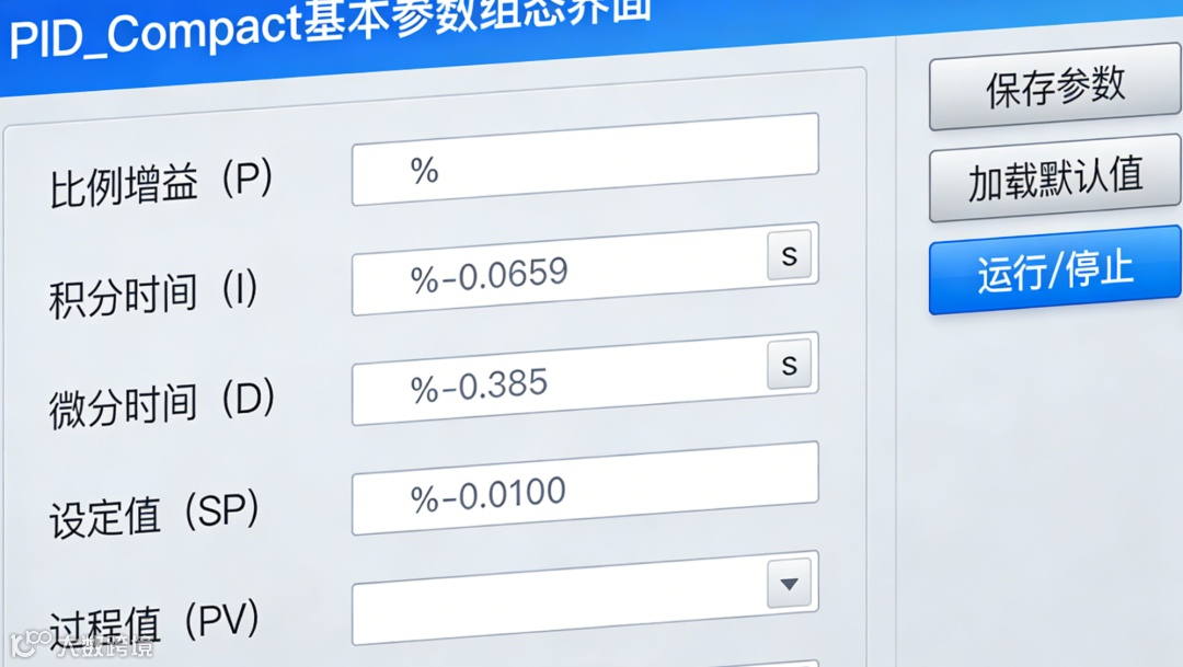 在 TIA Portal 的 “工艺对象→PID→PID_Compact” 中新建 PID 实例,系统自动生成背景 DB,所有参数与状态均存储在该 DB 中,便于程序访问与上位机监控。