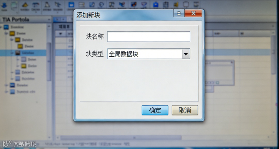 在西门子TIA Portal中,通过“添加新块”选择“数据块(DB)”,并指定为“全局DB”。