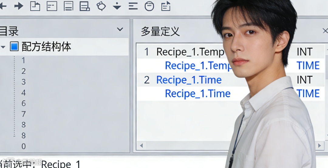 这样,操作员通过HMI选择配方编号后,程序只需从对应的结构体中读取参数,赋值给运行变量。