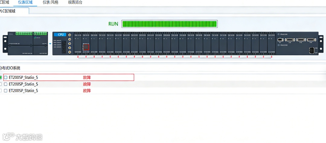 该界面以友好的图形化方式展示CPU状态、诊断缓冲区、以及所有分布式IO站点的健康状态。