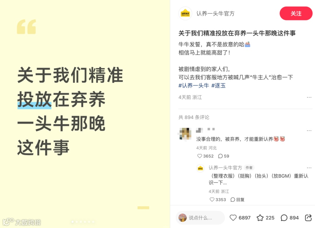 一夜之间,“弃养一头牛”成了全网顶流热梗,刷爆微博、抖音、小红书全平台。纯靠投放时机与剧情的巧合共振,就拿到了远超付费曝光的社交流量。这波躺赢,简直天选。