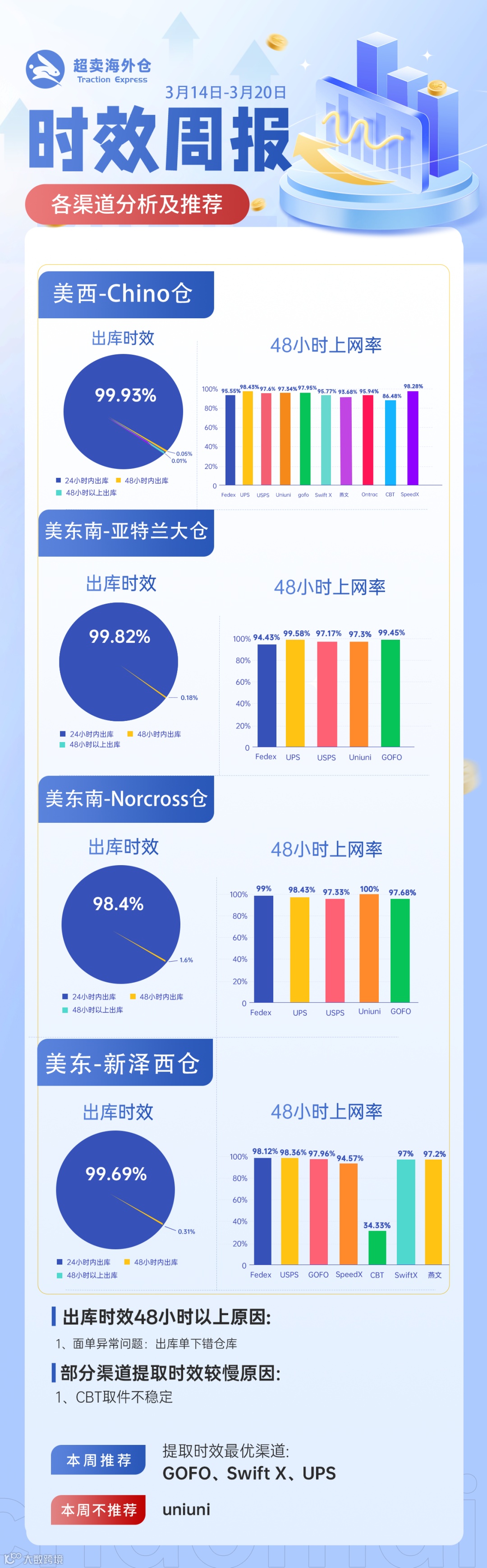 超卖美国美西美东仓时效周报(3.14-3.20)