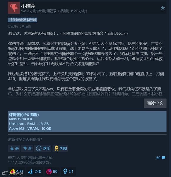 3月20日,制作方Mega Crit发布了v.0.100.0号平衡性调整补丁,作为抢先测试阶段,制作组频繁进行平衡性调整和测试本来无可厚非,但全是因为补丁中的一些改动决策,引发了较为严重的评价反噬。