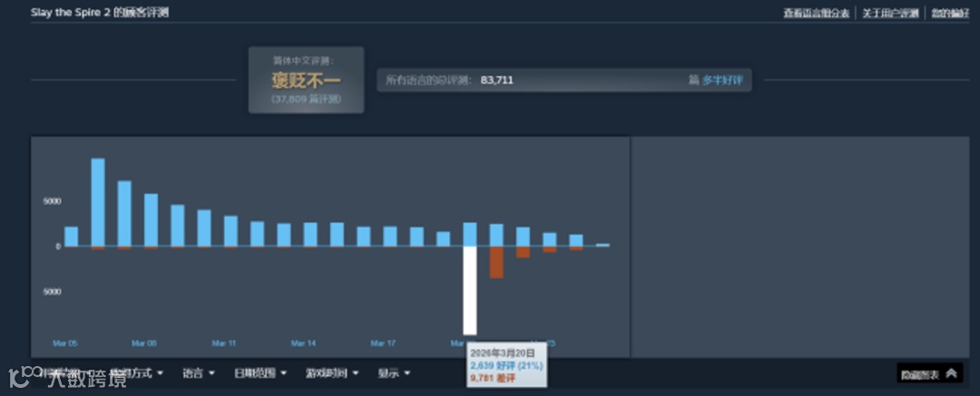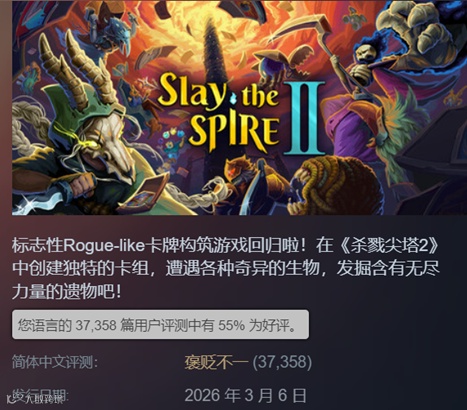 这款EA(抢先测试游戏)登录Steam的经典肉鸽卡牌构筑游戏续作,在3月初发售后平台日活迅速冲到惊人的574638人,销量突破300万。谁能想到这样叫好又叫座的独立游戏佳作,却在上周遭遇口碑变故。