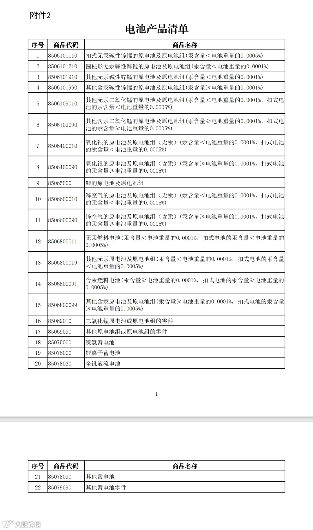 (二)被取消增值税出口退税的电池类产品清单: