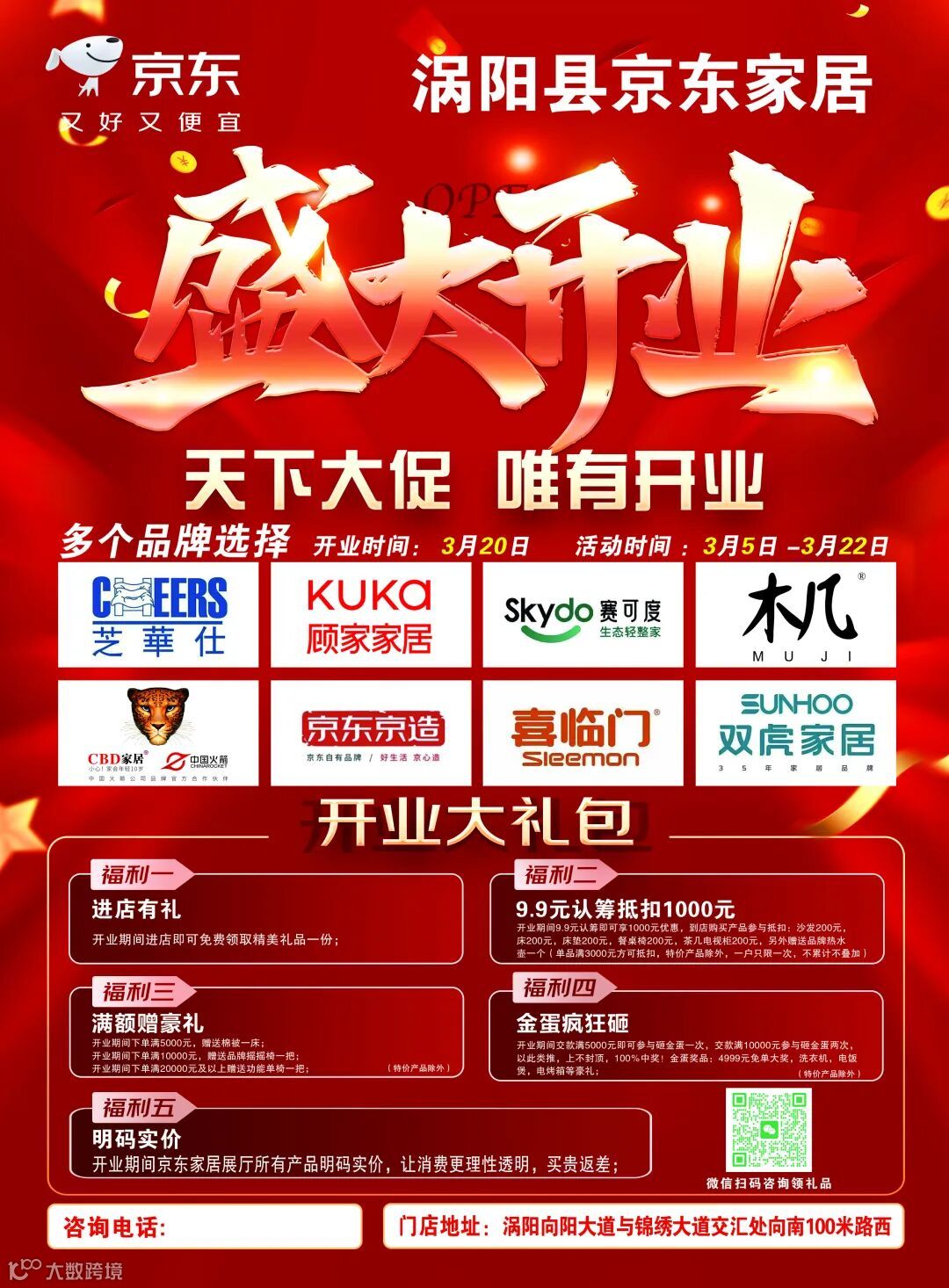 开业期间9.9元认筹即可享1000元优惠,到店购买产品参与抵扣:沙发200元,床200元.床垫200元.餐卓椅200元,茶几电视柜200元,另外赠送品牌执水壶一个