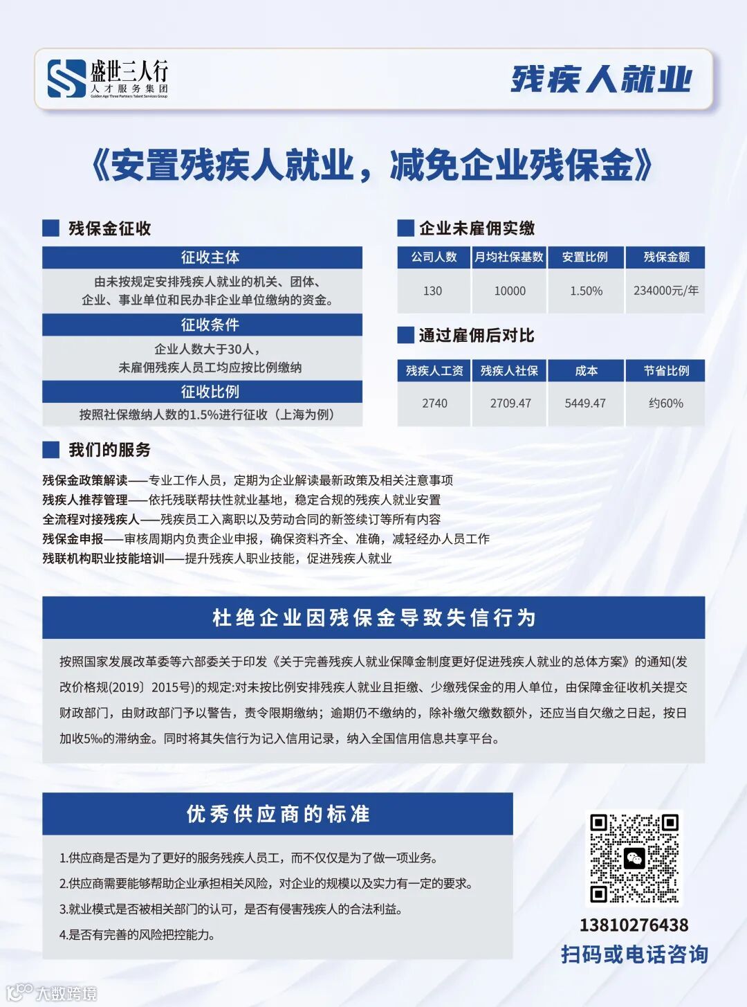 ■安置达标/超比例:零缴纳残保金,还可申请岗位、社保补贴;