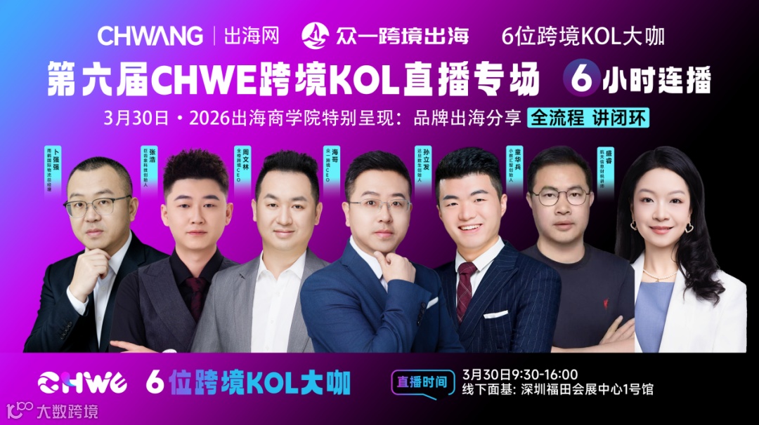 第六届CHWE全球跨境电商展将于2026年3月30日至4月1日在深圳福田会展中心举行。作为跨境行业开年盛事,展会集趋势发布、资源对接与爆款洞察于一体,助力企业精准把握行业动向。