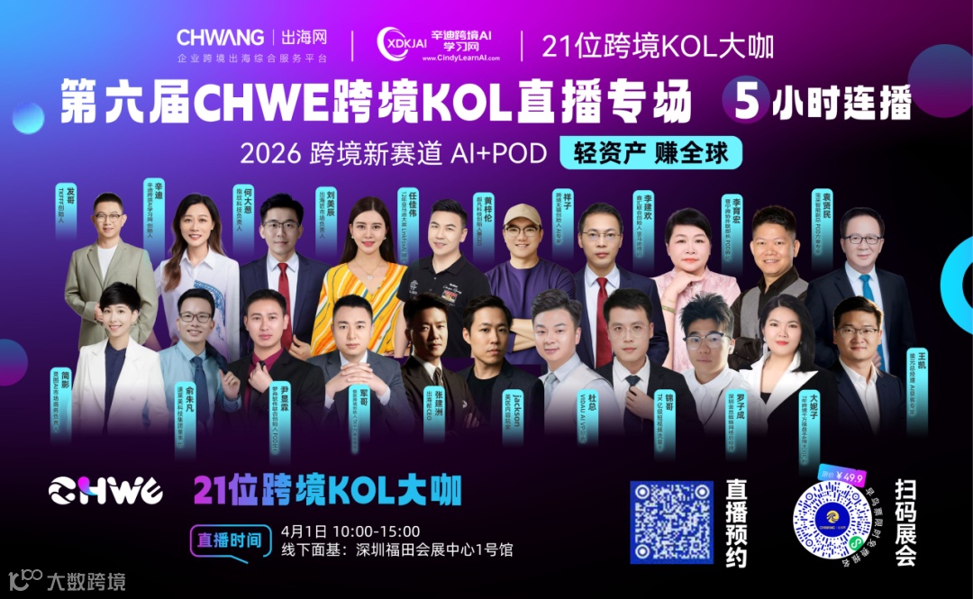 出海网将在1号馆举办直播活动,探讨AI+POD新赛道及商机。
