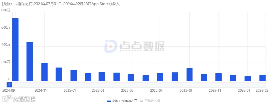 《龙族:卡塞尔之门》国服iOS端月流水趋势