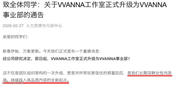 原定2026年的《项目K》(虚幻5开发的原创IP女性向游戏)延期至2027年,作为核心战略产品由升格后的VVANNA事业部主控开发。2027年将推出原创IP动作射击游戏《项目代号:ONE》,2028年规划SLG与放置RPG新品。原计划《龙族幻想》续作《代号:Odin》等MMO项目已取消。