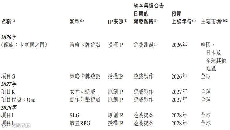 公司调整战略重点:收缩MMO赛道投入,将资源倾斜至女性向与卡牌品类,并强化全球发行。2026-2028年计划推出6款新游:
