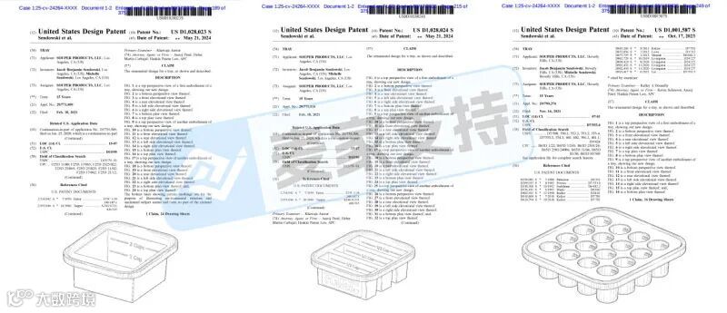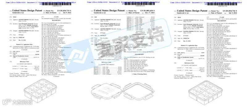本案是BSF律所代理Souper Products LLC 发起的商标&专利维权案件,涉案商标牌为:Souper Cubes的文字商标以及图形商标,商标号为:5545717、5546054及6852394等;除此之外,Souper Products LLC还针对其在美国注册的专利号为:D887460、 D905133、D906379、D1021979、D1033486、D1028022、D1028023、D1028024、D1001587、D1034715、D1001634和D1034716共12个专利未经授权使用情况发起维权!麦家支持提醒跨境卖家尽快展开全面自查,避免案件获批后账户被TRO冻结!