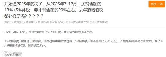 相较Q3数据口径粗放问题,本次成本端数据的同步使毛利核算具备实操基础。多地已出现补税案例,如广东某一般纳税人被要求按销售额13%补缴增值税及附加税费,综合税负率达销售额20%。