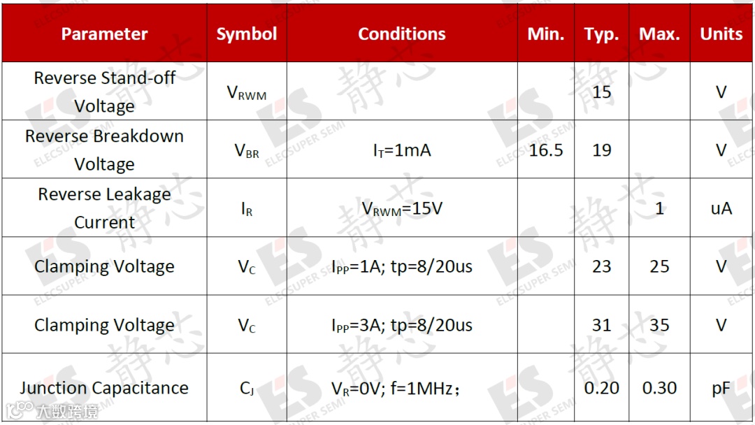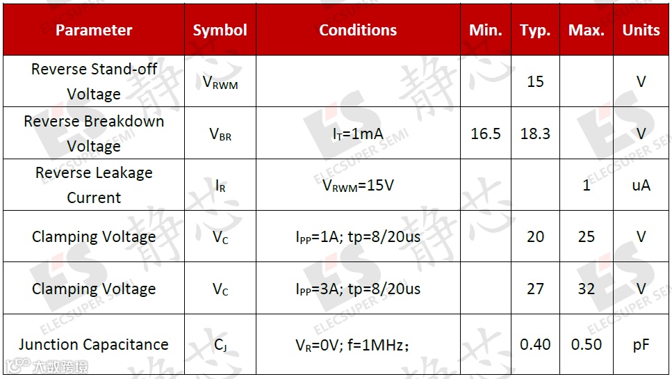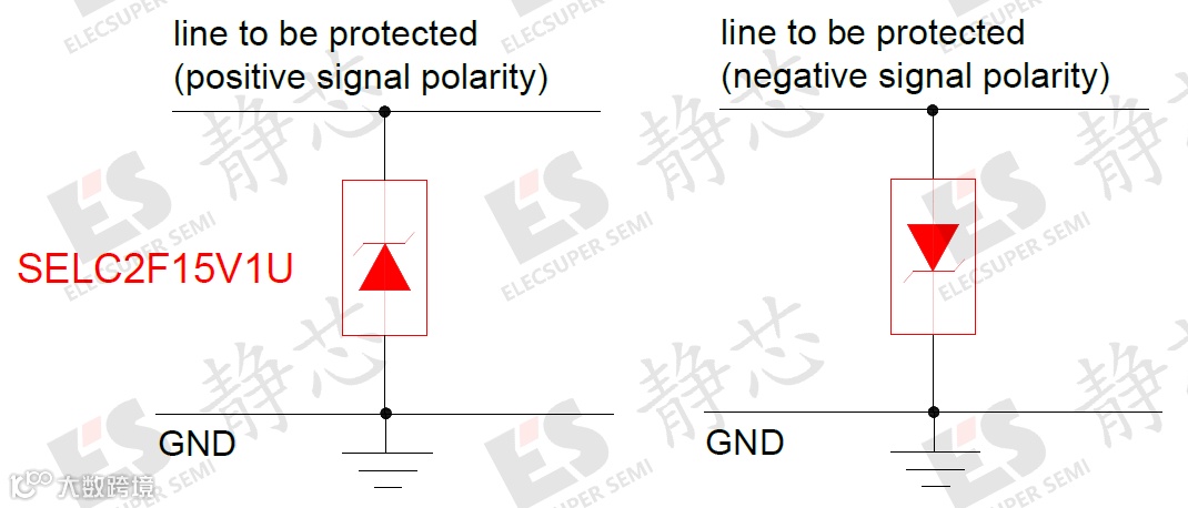 SELC2F15V1U为单向器件,具有0.4pF的极低电容,钳位电压较低,保护效果更好,适用于单向信号线。