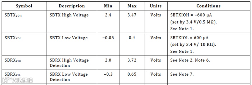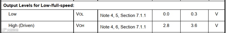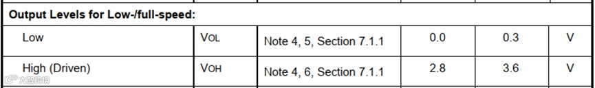 高速模式下的差分线上的工作电压为2.8-3.6V,则Vdd-max=3.6V