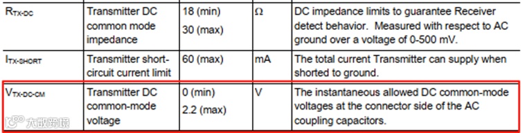 AC耦合电容隔离了 TX端的直流(VCM-TX)和RX端的直流(VCM-RX),RX端没有直流源,因此没有持续的DC电压会强制ESD器件进入闩锁状态。在AC耦合电容的连接器侧,允许的瞬时直流电压VCM-RX最大值为2V,但这是瞬态的电压,而非固定的直流电压,且可快速释放。这种设计确保了 ESD保护器件不会因TX信号耦合而进入闩锁状态,同时满足信号完整性和可靠性要求。