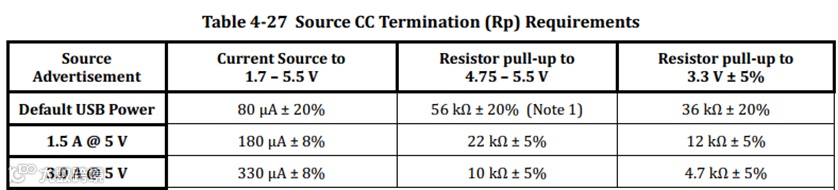 Source端(源端)主要用于提供电源,发起供电能力通告,控制VBUS电压/电流,通常为数据主机(Host),如充电器、主机等,在CC引脚接上拉电阻Rp(56kΩ)。