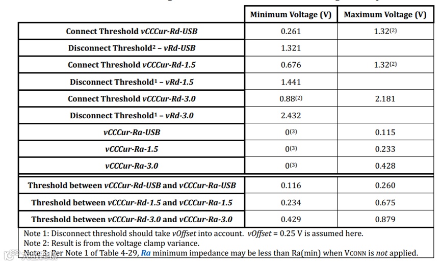 Source 通过检测电压是否在阈值范围内判断是否连接成功,通过检测哪根 CC 线有分压来判断插头方向。