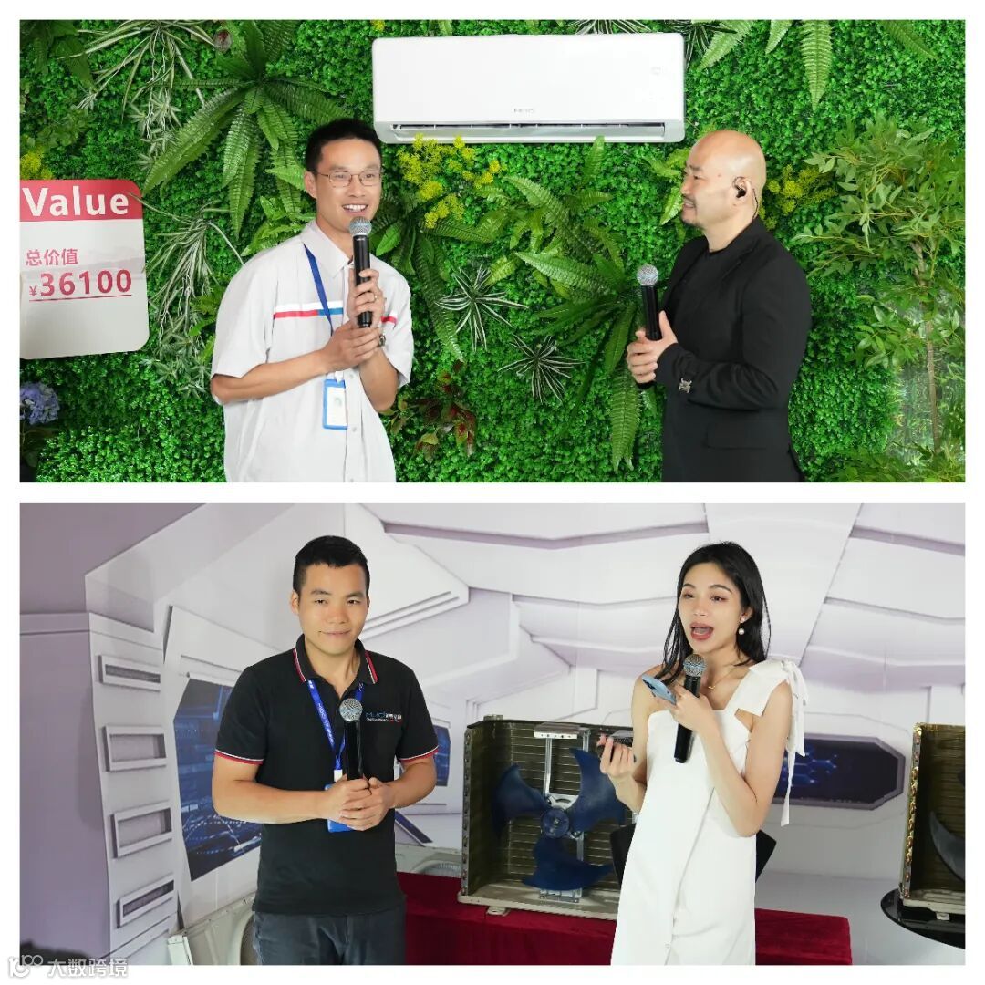 直播当晚,“路逍遥”亮相第三届美博超级品牌日直播间,现场为粉丝演唱了多首传唱度高的歌曲,还与美博集团研发总监甘代辉,共同揭开美博新一代热泵空调面纱。为了让粉丝“秒懂”这款新品,美博集团国内研发部部长唐利现身直播间,现场拆开热泵空调外机,秀出内部零部件,并与普通空调外机对比,讲解新一代热泵空调的硬核黑科技,以直观、高效的方式将内容信息呈现给现场粉丝。