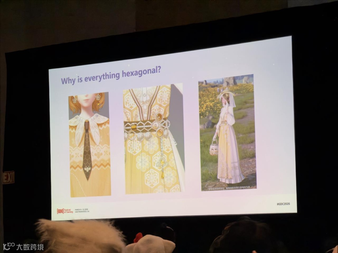 为此,她举了一个有意思的例子:在游戏中和蜜蜂相关的服装都会使用六边形元素,但这并非是因为蜂巢是六边形,而是因为奇迹大陆的蜜蜂就是六边形的。
