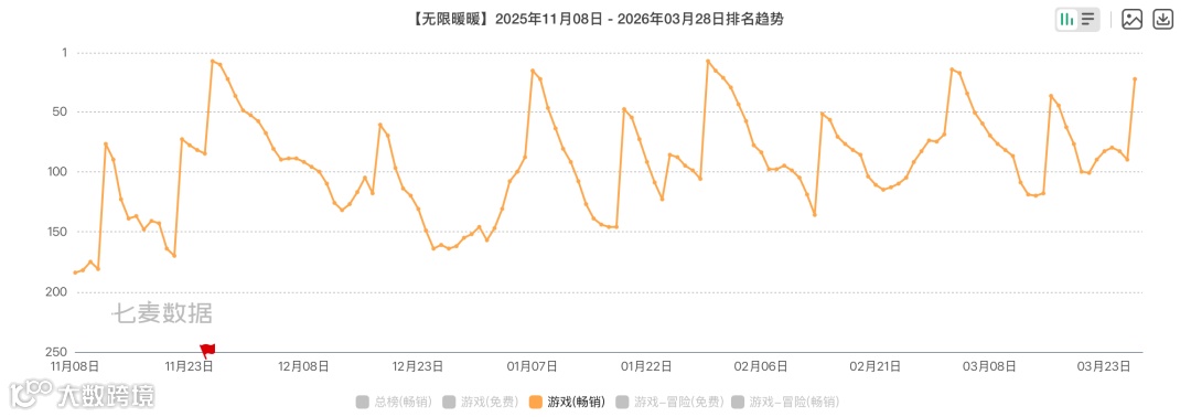 (近几个月,《无限暖暖》的畅销排名一路走高)