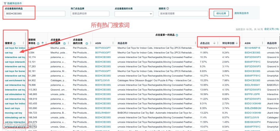 直接搜索竞品,找到竞品的所有搜索词,以及每个词对应的点击占比和转化率