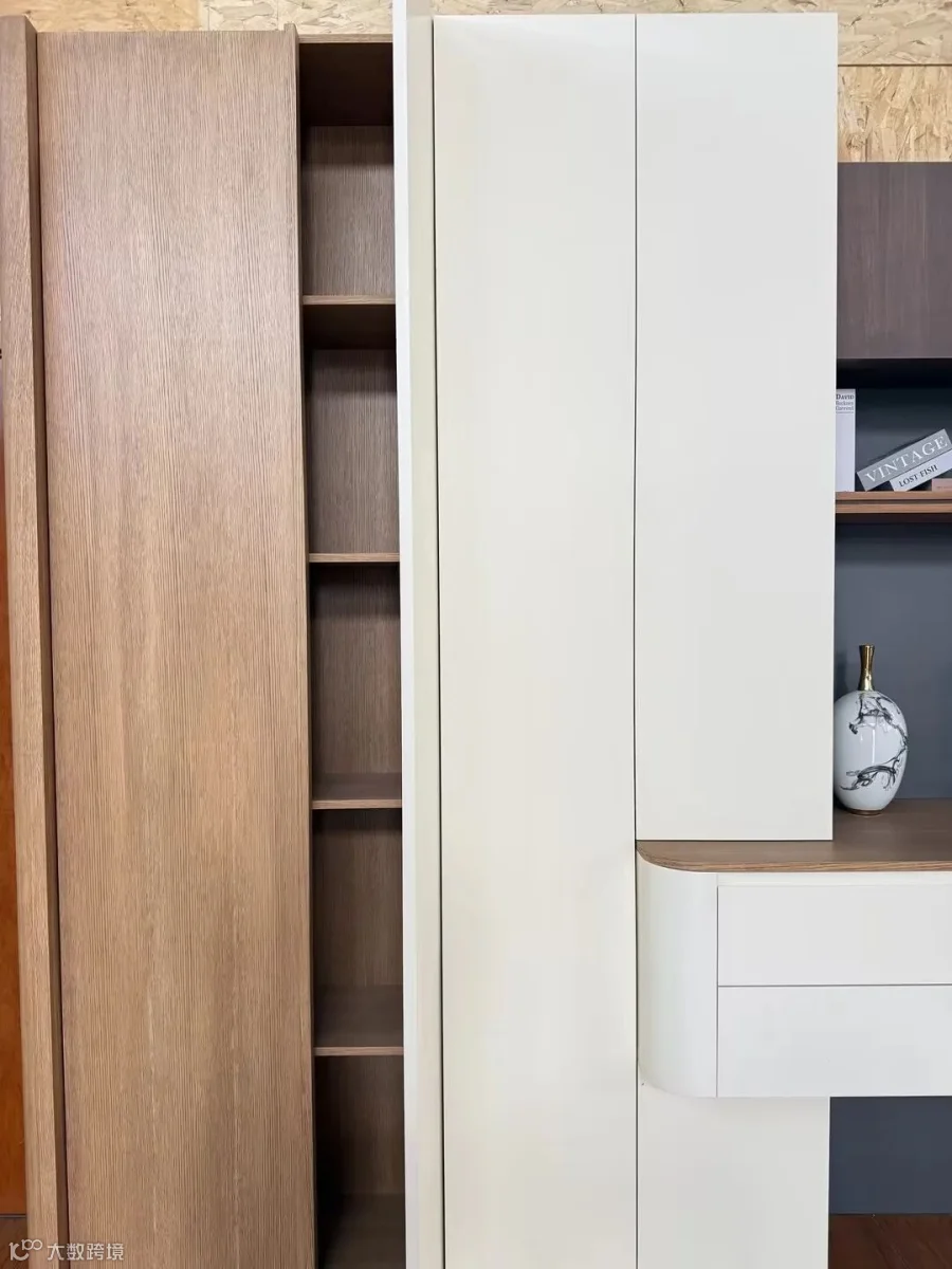 这套柜子采用了暖棕木色+奶白色的撞色搭配,既有木质的温润复古,又有奶油白的柔和干净,适配各种家装风格。• 木色部分:选用进口实木/多层板,表面做了细腻的木皮纹理,摸上去有清晰的木纹触感,耐刮耐磨又显高级。• 白色部分:采用哑光肤感饰面,触感像婴儿肌肤一样细腻,防指纹、易清洁,日常打理毫无压力。