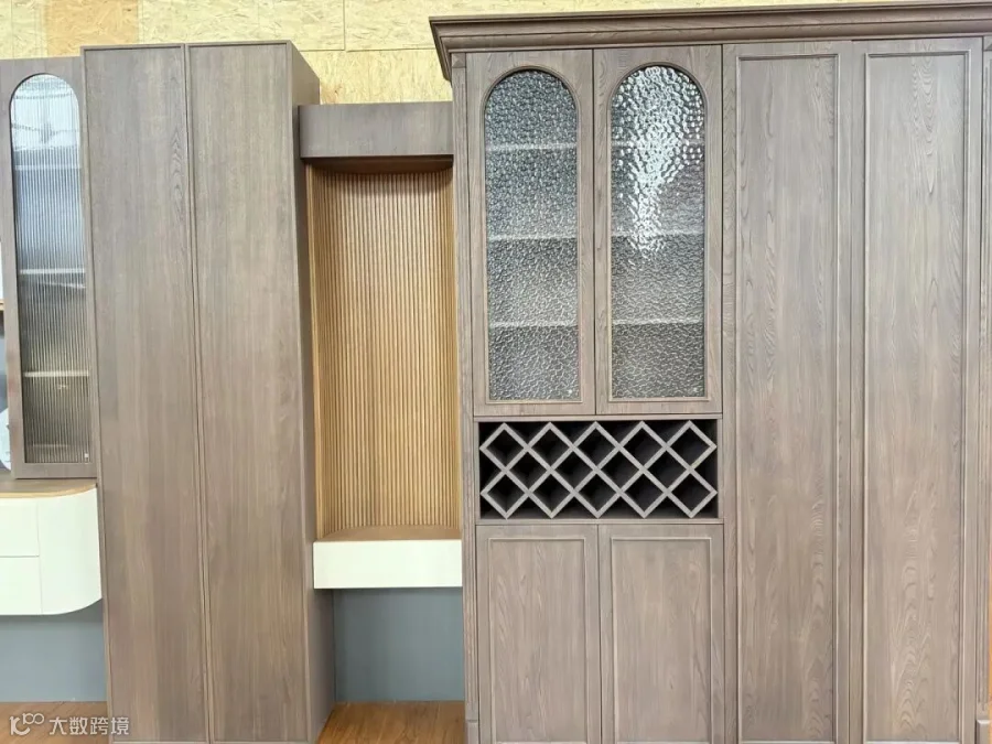 1. 圆弧工艺:柔化棱角,安全又高级• 柜体多处用到圆弧收边(比如抽屉侧边、柜体转角),告别尖锐直角,家里有老人小孩也更安全。• 圆弧过渡自然流畅,没有生硬拼接痕迹,让整体造型更柔和灵动,视觉上更显轻盈。2. 门板工艺:极简线条,细节控狂喜• 无拉手设计:采用隐藏式拉手,门板表面干净利落,视觉上更整洁,也避免了积灰死角。• 分缝工艺:门板之间的缝隙均匀一致,误差控制在1mm以内,强迫症看了都舒服。• 部分柜门采用长虹玻璃/水波纹玻璃:半透朦胧感,既遮挡了内部杂物,又让光线自然渗透,提升空间通透感。3. 结构工艺:收纳与颜值双在线• 开放格+封闭柜+抽屉的组合设计:开放格可以展示摆件、书籍,封闭柜藏起杂乱,抽屉收纳小物件,分区明确,拿取方便。• 酒柜部分:菱形酒格+玻璃展示区,手工拼接的菱形格稳固耐用,能完美收纳红酒,玻璃门则让藏品一目了然,兼具实用性与展示性。• 层板可调节:大部分柜体层板都支持自由调节,能根据物品高度灵活改变空间,适配不同收纳需求。4. 封边与五金:耐用才是硬道理• PUR封边:柜体和门板的封边严密平整,没有溢胶、开胶问题,防水防潮,延长柜子使用寿命。• 进口五金:铰链、滑轨都选用知名品牌,开合顺滑无声,承重能力强,反复使用也不易变形,保障长期使用的稳定性。