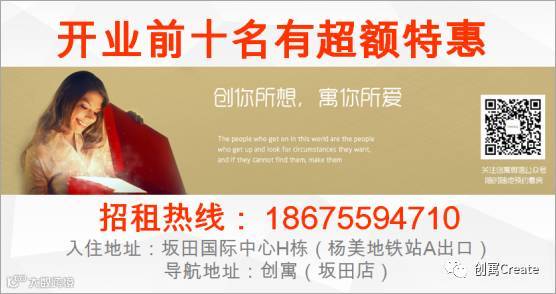 另外,小编告诉各位一个好消息,【创寓】坂田店二期已于10月1日正式开业,现有少量房源, 等不及的创友们可以抢先预定创寓(坂田店)。