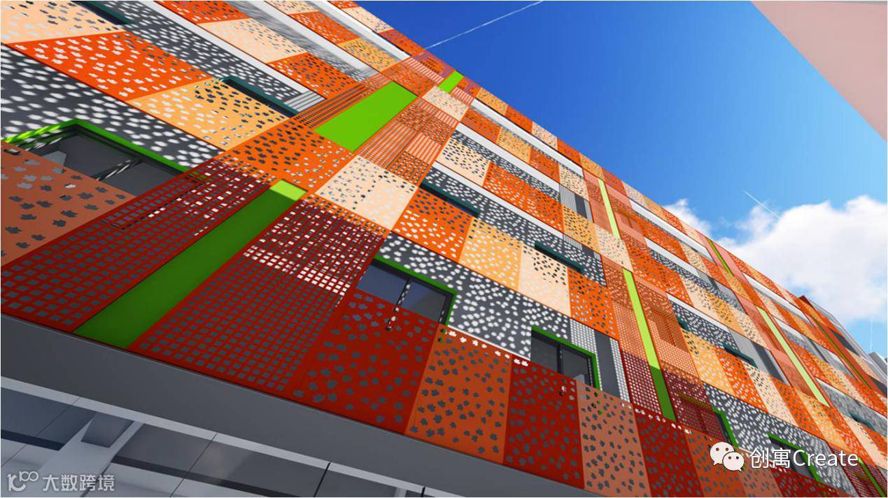 创寓(平湖店)在外立面设计上,延续了创寓的主色调橙色,运营铝扣板打造出跳跃外形,强大品质感的同时,为年轻人打造充满活力的青年城邦。