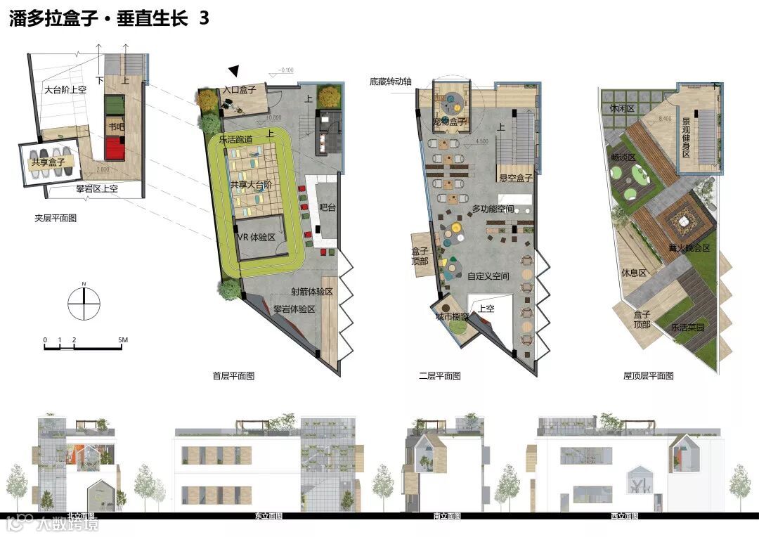 服务受众以青年群体为主,以创造“家”为原型,打造由“家”组成的微型社区,利用“模数化”的构件方式营造,控制成本并便于后期维护。