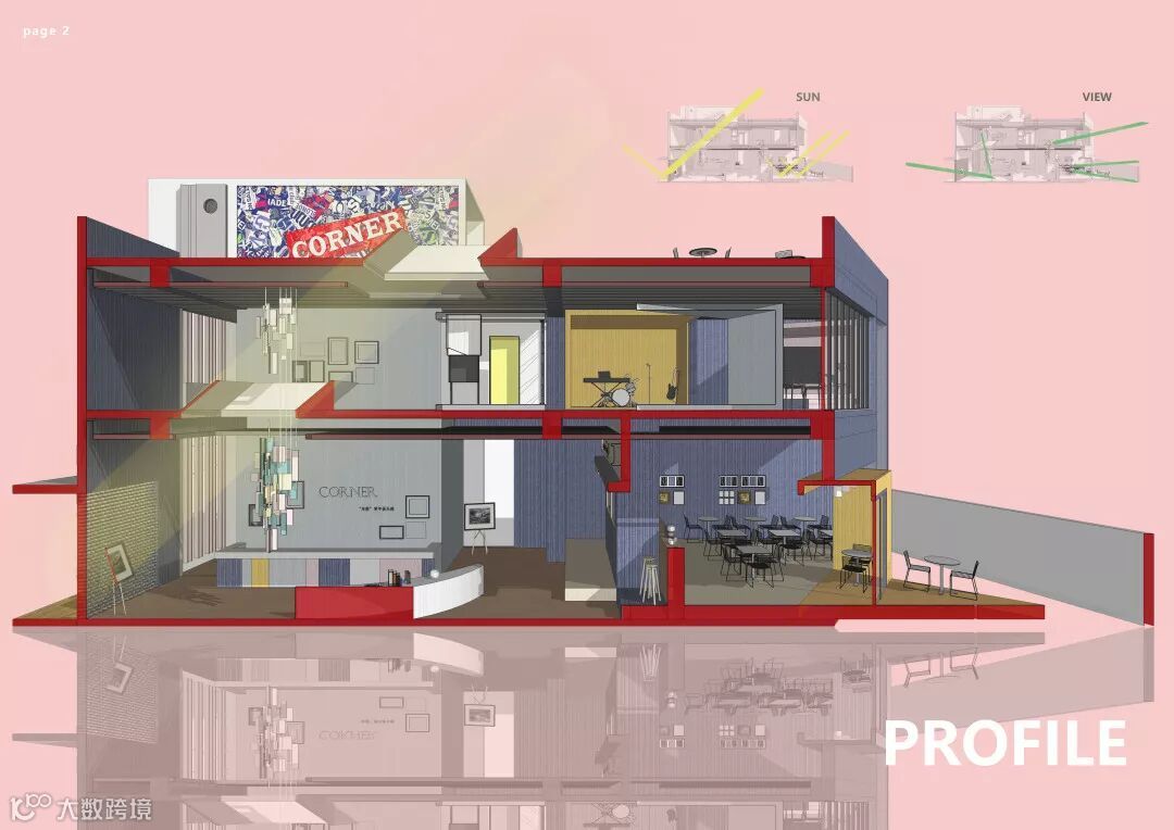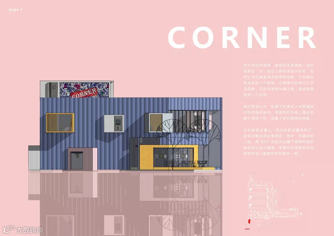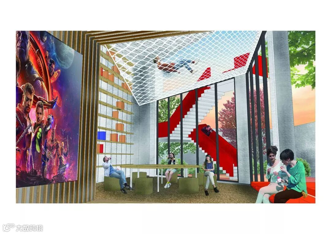 该作品以“角”为命题,通过不同的视角去发掘该空间的潜力,赋予年轻,活力的属性,打造一个集娱乐,文艺,休闲的共享空间。